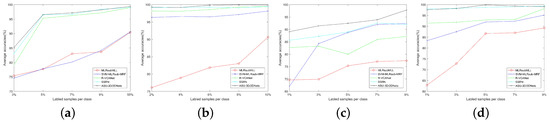 The above experimental results have shown that the proposed ASU-3D/2DNets method performs well in HSI classifications, especially in the case of having smaller training samples. In this part, we would like to further investigate the scenarios of extremely scarce training samples. The curves of AA, with respect to a different number of training samples, are shown in Figure 14.