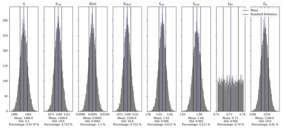 The analytical method can become difficult to apply on complex functions with many correlated input parameters where the calculation of sensitivity coefficients is not straightforward. Monte Carlo Methods (MCM) for uncertainty estimation are recognised, accepted and summarised in the GUM supplement []. MCM is a numerical method that requires a distinct probability distribution function (PDF) for each of the input components; if input components are correlated, then the joint PDF and the measurement equation are required. The MCM will then run a large number of numerical calculations of the measurement equation, with each iteration using a random choice of each of the inputs from the available range defined by the relevant PDF. The large number of output values calculated using different input values at each iteration provides the uncertainty of the output value with its PDF.