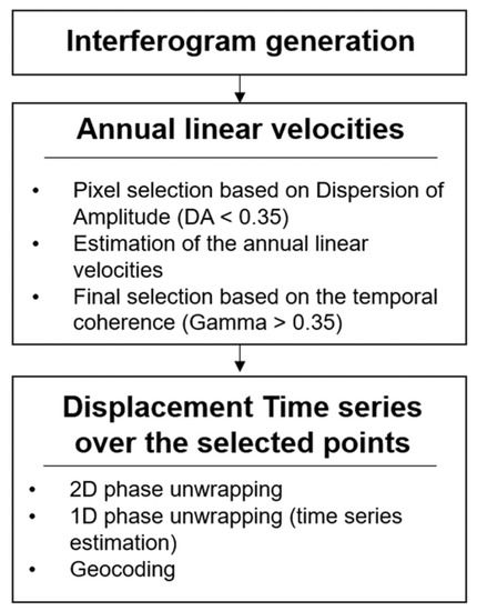 Flowchart resuming the main steps of the DInSAR processing. Refer to [53,54,55] for further details.