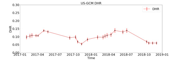 Example of upscaled Direct Hemispherical Reflectance (DHR) and uncertainty values at the US-GCM site.