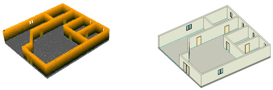 - Macher, H.; Landes, T.; Grussenmeyer, P. From point clouds to building information models: 3D semi-automatic reconstruction of indoors of existing buildings. Appl. Sci. 2017, 7, 1030. [Google Scholar] [CrossRef]
