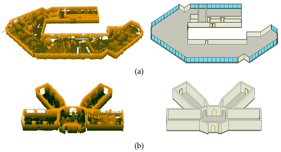 Automatic reconstruction of 3D indoor models is of great interest in photogrammetry, computer vision, and computer graphics, owing to its wide range of applications in construction management, emergency response, and location-based services [1,2]. Although recent lidar scanning and photogrammetry techniques allow efficient capturing of the as-is condition of a building, development of automated processes for the production of accurate, correct, and complete 3D models from the data remains highly crucial [3]. However, the automated generation of the 3D models of indoor environments is challenged by the inherent noise and incompleteness of the data and requires further investigation [4,5].