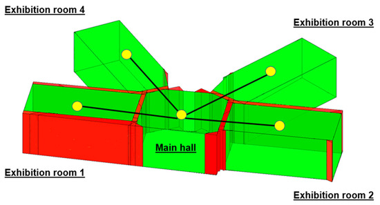 The connectivity relations (black solid line) between final spaces (i.e., rooms and corridors) of the Museum.