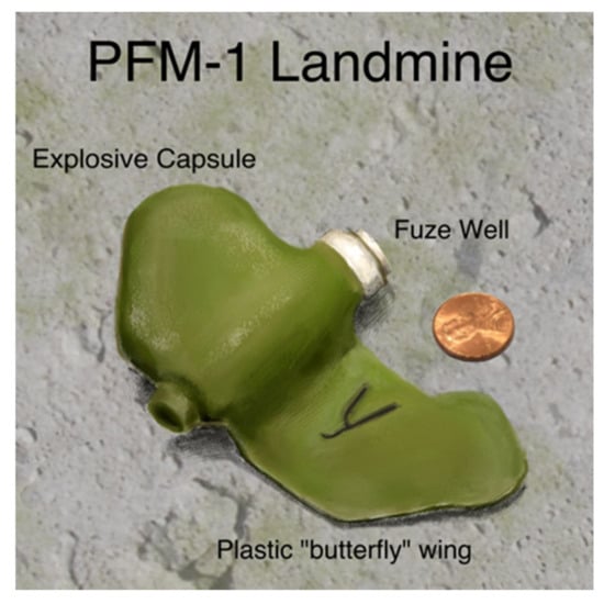 - Rosenfeld, J.V. Landmines: The human cost. ADF Health J. Aust. Def. Force Health Serv. 2000, 1, 93–98. [Google Scholar]