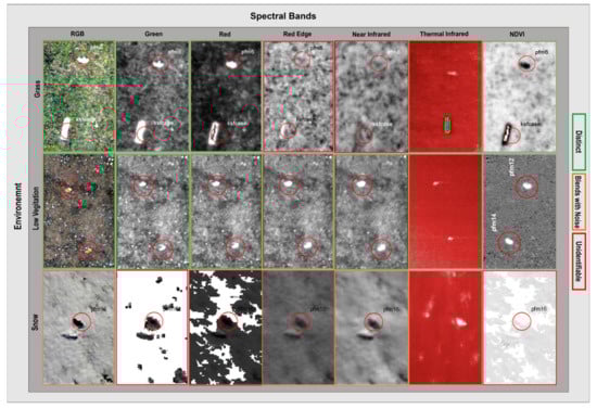 - Nikulin, A.; De Smet, T.S.; Baur, J.; Frazer, W.D.; Abramowitz, J.C. Detection and identification of remnant PFM-1 ‘Butterfly Mines’ with a UAV-based thermal-imaging protocol. Remote Sens. 2018, 10, 1672. [Google Scholar] [CrossRef]