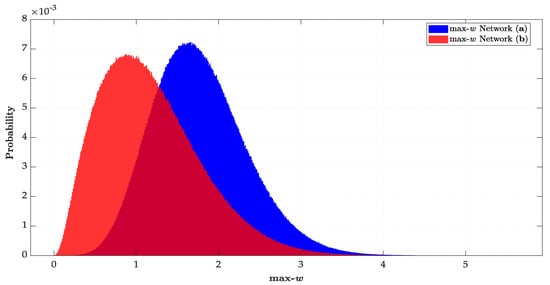 According to Equation (23), the correlation depends on the matrices and , and therefore, the distribution of max-w also depends on these matrices. In other words, the critical value depends on the uncertainty of the measurement sensor and the mathematical model of the problem.