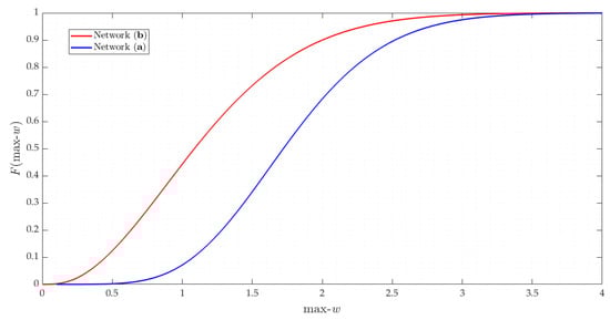 - Sort in ascending order the maximum test statistic in Equation (26), getting a sorted vector , such thatThe sorted values in Equation (27) provide a discrete representation of the cumulative density function (cdf) of the maximum test statistic max-w.