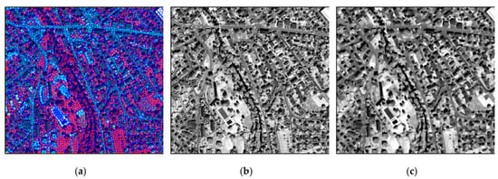 where and . By applying the filtering with the guidance image, those abrupt changes within local gradient regions are expected to be well preserved, whereas others are smoothed under the effects of different sizes of pre-set windows. Such effects can be seen from an illustrated example as shown in Figure 4 by using the QuickBird images.