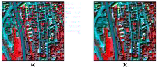 Visual comparison (Bands: 4, 3, 2) of: (a) pixel-level guided filter (PGF) features and (b) SGF features with the scale of r = 6.