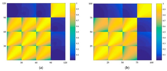 The R2 correlation matrixes of MSGF features generated on: (a) Zh1; and (b) Zh2.