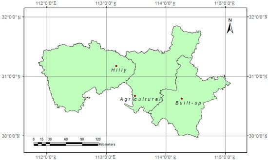 The three study sites: built-up, agricultural, and hilly.