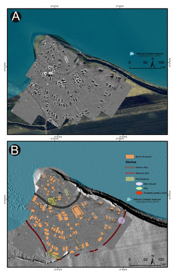 - Asăndulesei, A. Inside a Cucuteni Settlement: Remote Sensing Techniques for Documenting an Unexplored Eneolithic Site from Northeastern Romania. Remote Sens. 2017, 9, 41. [Google Scholar] [CrossRef]