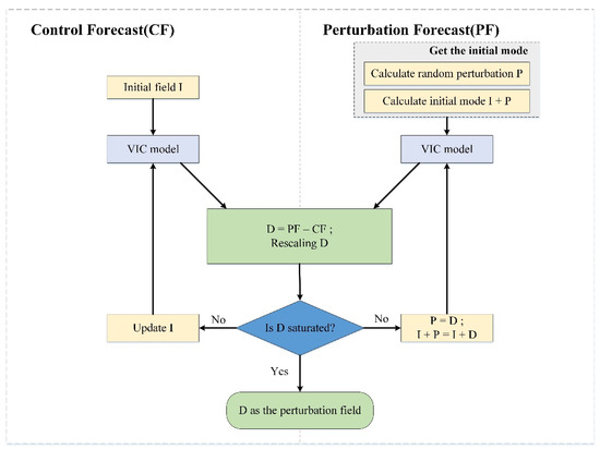 With the initial ensemble perturbations, we must provide an accurate representation of the probability distribution of the true state of the land surface. The shape of this probability distribution will depend on the kind of errors in the true state. If the likelihood of an error pattern is high, we should assign a higher probability to the true state plus or minus that particular error pattern. The BGM method is based on the notion that using the land surface model to dynamically propagate information about the state of the system in space and time will accumulate growing errors by virtue of the perturbation dynamics [42,43]. Compared to other initial distribution methods, this method is more advantageous because of its clear dynamic meaning, simple operation, and low computational cost. In 1992, it was commercialized at the National Centers for Environmental Prediction (NCEP).