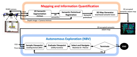 - An overall exploration strategy that utilizes rapidly exploring random tree (RRT) for viewpoint sampling, and the next-best-view approach with the proposed semantic utility functions to iteratively explore the unknown environment and label all the objects there.