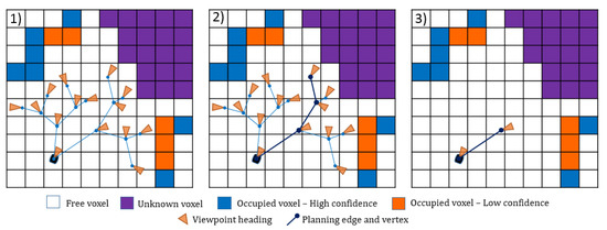 - Bircher, A.; Kamel, M.; Alexis, K.; Oleynikova, H.; Siegwart, R. Receding Horizon “Next-Best-View” Planner for 3D Exploration. In Proceedings of the 2016 IEEE International Conference on Robotics and Automation (ICRA), Stockholm, Sweden, 16–21 May 2016; pp. 1462–1468. [Google Scholar]