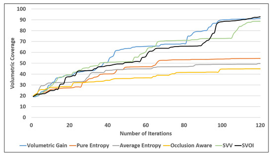 - Delmerico, J.A.; Isler, S.; Sabzevari, R.; Scaramuzza, D. A comparison of volumetric information gain metrics for active 3D object reconstruction. Auton. Robot. 2018, 42, 197–208. [Google Scholar]