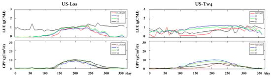 Table 1. LUE m a x ,   LUE m a x s u   and   LUE m a x s h for each vegetation type.