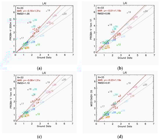 69. Fang, H.; Zhang, Y.; Wei, S.; Li, W.; Ye, Y.; Sun, T.; Liu, W. Validation of global moderate resolution leaf area index (LAI) products over croplands in northeastern China. Remote Sens. Environ. 2019, 233, 111377. [Google Scholar] [CrossRef]