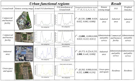 To illustrate that urban region functions can be recognized from integrating remote sensing images and POI data in urban areas, we demonstrated some dynamic results in different situation in Figure 14.