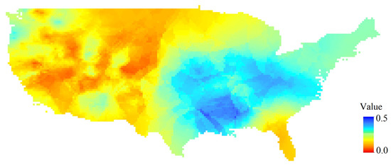 Approximately 700 SM sites operated by three SM networks, i.e., the U.S. Climate Reference Network (USCRN), Snow Telemetry (SNOTEL), and Soil-Climate Analysis Network (SCAN), are located in the study area (Figure 1). The hourly data sets at 0.05-m depth from January 1 at 00:00 to October 31 at 23:00 in 2019 were collected and generated as the actual SM in this study. The sampling interval of the original data was one hour, and the time interval of the measurements was converted into one month using the averaging method.