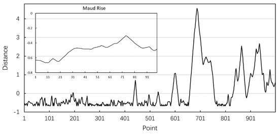 Distance analysis for the two edges. The abscissa is the sampling point and the ordinate is the distance after the Z-score normalization process. The small image in Figure 7 shows the distance analysis for Maud Rise.