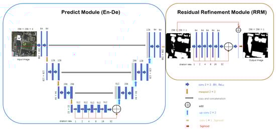To better address the problems of incomplete building extraction and inaccurate building footprint extraction of complex buildings in high-resolution remote sensing images, we propose a new deep learning network Building Residual Refine Network (BRRNet). The network consists of two parts: the prediction module and the residual refinement module. The prediction module is based in an encoder–decoder structure, which gradually increases the receptive field during feature extraction by introducing atrous convolution with different dilation rate to extract more global features. The prediction module finally outputs the preliminary building extraction results of the input image. The residual refinement module takes the output of the prediction module as an input. By correcting the residual between the result of the prediction module and the real result, it finally further improves the accuracy of building extraction. The network’s structure is shown in Figure 2.