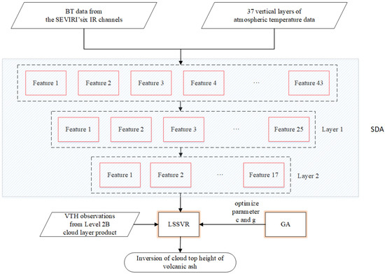 Section 2 introduces the data used in this study. Section 3 describes the methodology based on the hybrid use of the SDA, the GA, and the LSSVR, for retrieving VTH. Independent validation on VTH retrievals from the Eyjafjallajökull and PCCVC cases is given in Section 4. The VTH retrieval sensitivity to the atmosphere temperature profile input is analyzed in Section 5, and the VTH retrieval sensitivity to feature selection is investigated in Section 6. Uncertainty analysis is given in Section 7. Section 8 contains the concluding remarks. In addition, the detailed descriptions of the machine learning algorithms used in this study are given in Appendix A.
