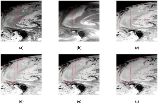 Brightness temperatures (BTs) of original six grayscale IR channels from SEVIRI images acquired at 04:00 UTC on 8 May 2010. (a): SEVIRI channel 4; (b): SEVIRI channel 5; (c): SEVIRI channel 7; (d): SEVIRI channel 9; (e): SEVIRI channel 10; (f): SEVIRI channel 11 (The red dotted box indicates the location of the volcanic ash cloud).