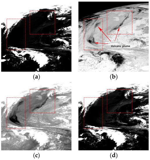 - Ellord, G.P.; Connell, B.H.; Hillger, D.W. Improved detection of airborne volcanic ash using multispectral infrared satellite data. J. Geophys. Res. Atmos. 2003, 108, 4356. [Google Scholar] [CrossRef]