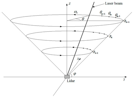 Figure 2. Geometry of the conical scanning by the lidar probing beam.