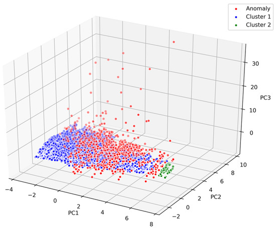 For this part of data, the traditional RAIM FDE algorithm recalculates the position by excluding, one by one, the visible satellites at each epoch. Once meeting the Chi-square test, the position solutions of these epochs are output. However, in epochs with a large number of anomalous observations, the algorithm usually fails. Since HDBSCAN itself can also be used to build predictive models, we first try to predict anomalies of D1b using HDBSCAN which are trained on D1a in this section. The prediction results are shown in Figure 12. To facilitate visualization, the dataset was projected onto the PC1-PC2 plane. There are 599 anomalous observations, obviously more than the normal observations. The remaining 134 normal observations are used for single point positioning to verify the effect of anomaly detection.