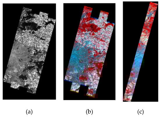 ALI PAN image (a), RGB compositions of ALI MSI (b) and Hyperion HSI over Paris (c).