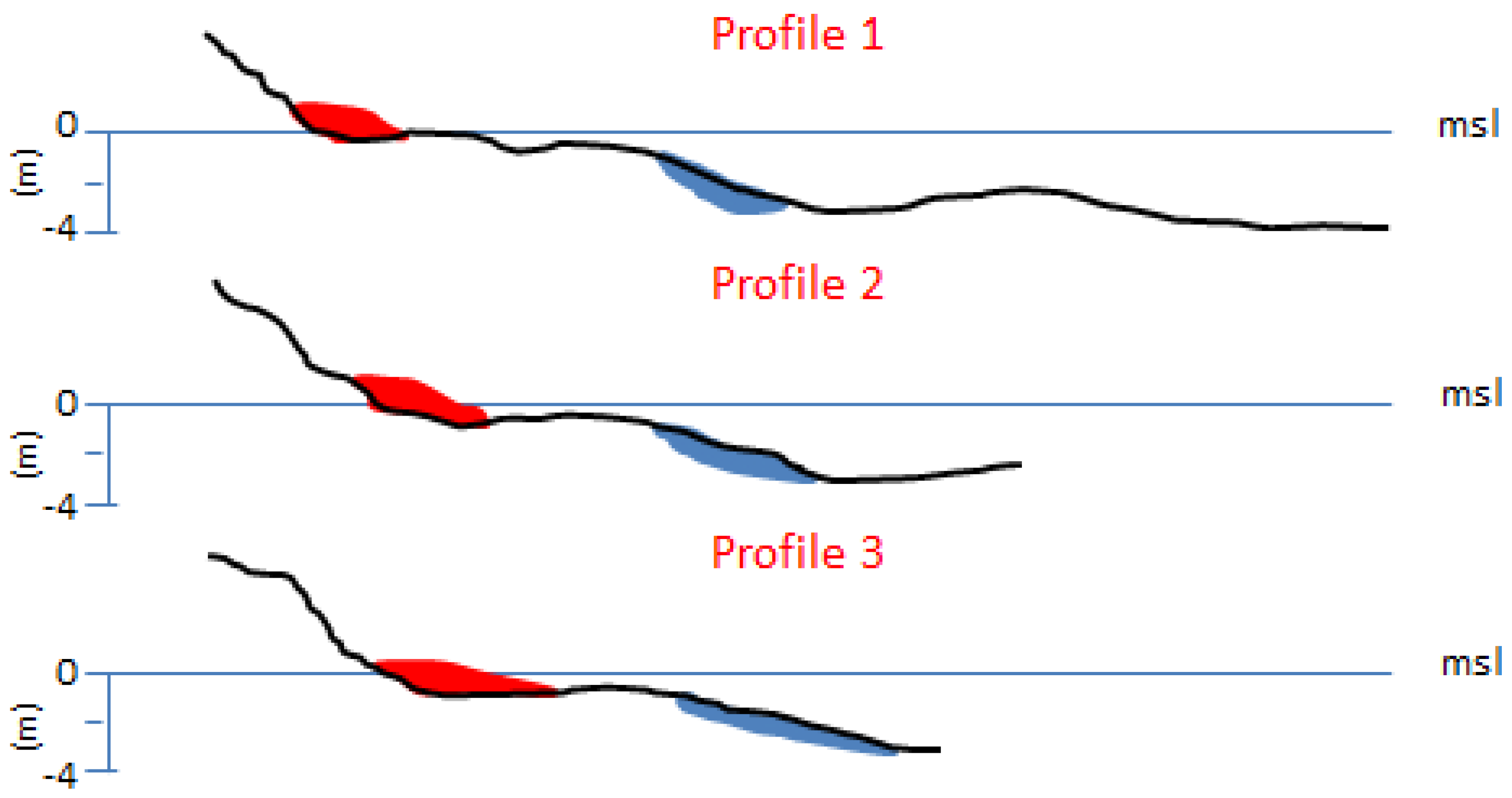 4.3. Submerged Bed FormsObserved in the Nearshore Zone