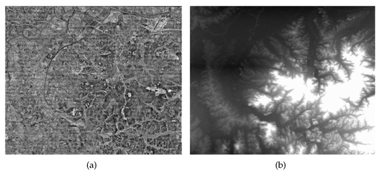 The reference data for image simulation: (a) DOM and (b) DSM.