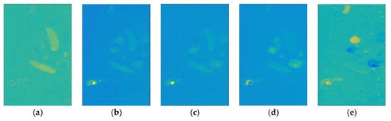 Because of the low imaging speed and long processing time of underwater hyperspectral images, the current research on underwater spectral imaging and detection is mainly focused on the detection of underwater pipelines, the distribution and species detection of underwater plants and microorganisms, etc. [,,,,], but the capability of real-time detection is low. Some researchers have complied a spectral library for recognition and detection of different underwater targets. Kuniaki Uto et al. [] classified the objects of interest by measuring their average spectral curves of cauliflower and sand to calculate their resultant correlation coefficient. Tegdan [] et al. used a spectral library of some known objects of interest to achieve automatic recognition of other objects. An underwater hyperspectral imaging (UHI) system, jointly developed by Norwegian company Ecotone and Norwegian Underwater application robotics, is an optimized underwater hyperspectral imaging system, which can be used for underwater hyperspectral remote sensing. This system is capable of collecting information in the full color spectrum (370–800 nm).