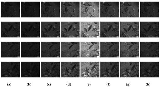 Underwater target detection using the images acquired by traditional red-green-blue (RGB) cameras has become more and more mature where traditional image processing methods [,] and target detection algorithms based on deep learning, such as Faster Region-based Convolutional Neural Networks (Faster R-CNN) [] and You Only Look Once (YOLO) [], have been widely applied to underwater target detection. In an ideal underwater imaging environment, the detection speed and accuracy of various algorithms can reach a high level of performance. However, the traditional RGB image detection technology suffers from a series of problems. When the underwater imaging environment is poor and marine animals have their protective color mechanism, it is difficult to detect and identify targets of interest effectively from the complex background [,].
