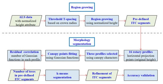 Ma, Z.; Pang, Y.; Wang, D.; Liang, X.; Chen, B.; Lu, H.; Weinacker, H.; Koch, B. Individual Tree Crown Segmentation of a Larch Plantation Using Airborne Laser Scanning Data Based on Region Growing and Canopy Morphology Features. Remote Sens. 2020, 12, 1078. https://doi.org/10.3390/rs12071078