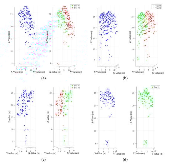 - Morsdorf, F.; Meier, E.; Allgöwer, B.; Nüesch, D. Clustering in airborne laser scanning raw data for segmentation of single trees. Int. Arch. Photogramm. Remote Sens. Spat. Inf. Sci. 2003, 34, W13. [Google Scholar]