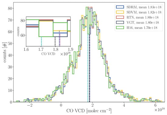 - Hochstaffl, P.; Gimeno García, S.; Schreier, F.; Hamidouche, M.; Lichtenberg, G. Validation of Carbon Monoxide Vertical Column Densities Retrieved from SCIAMACHY Infrared Nadir Observations. In Proceedings of the Living Planet Symposium, Prague, Czech Republic, 9–13 May 2016. [Google Scholar]