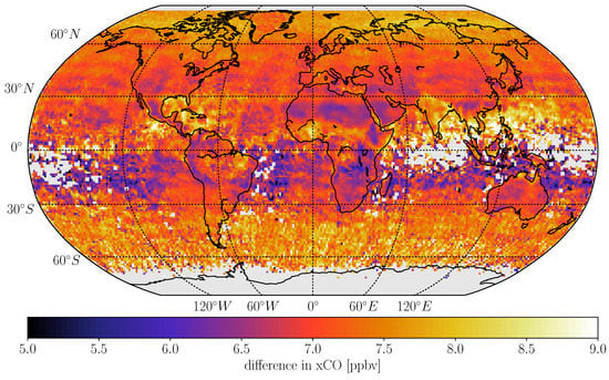 Appendix A.2. Global Map of CO Mole Fractions and Errors
