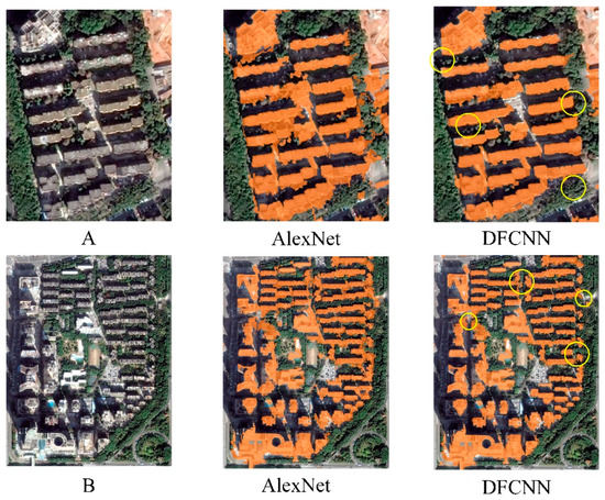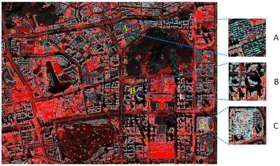 The recognition of urban buildings based on physical semantics is a significant prerequisite for the recognition of urban functional zones. The results of the building extraction are shown in this section.