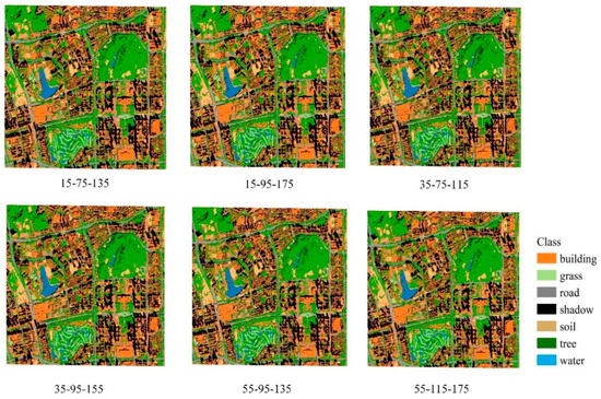 The scale effect is an inevitable and important issue in the VHSRI classification. The feature expression of the same training sample point varies with the size of the scale. The small scale contains more features of the object (spectrum, shape, texture, etc.), while the large scale focuses on the information of its surroundings (proximity, spatial distribution, etc.). Therefore, we considered the scale effect accordingly and carried out multiple sets of experiments in this paper. The size of the training window, that is, the scale, was set to 15–195, and the value was taken every 20 intervals. The specific experimental results are discussed in Section 4.2.3, combining multiple single-scale and multi-scale features at the same time.