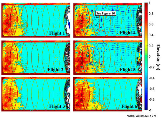 Baseline subtraction DEM for each drone surveillances using Flight 1 as baseline.