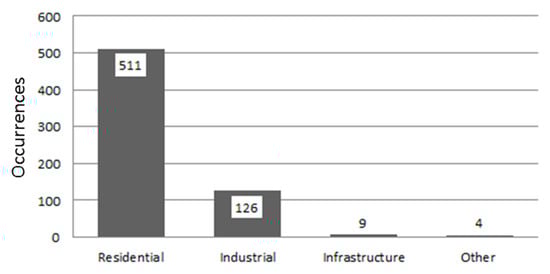 In the last step, one out of four possible classes (Residential, Industrial, Infrastructure and Other) was assigned to each change polygon based on a manual interpretation process using RGB images (orthophotos and very high-resolution satellite imagery) and context information from the environment surrounding the detected construction site.
