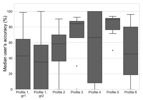 In terms of user profiles, we observed differences between profiles. The experts in LULC from local authorities, researchers in LULC at the IGN, and first-year students with basic knowledge of geographic information systems had the highest overall accuracies. Moreover, for profiles having the same theoretical background (Profile 1 and 3), the volunteers perform better validation than the non-volunteers. Differences in how the users approach the validation task are evident (e.g., local authorities used knowledge and context to try to identify types of change while those with no knowledge of LULC such as citizens. were quicker to choose ‘Unknown’ when the visual interpretation class became more uncertain).