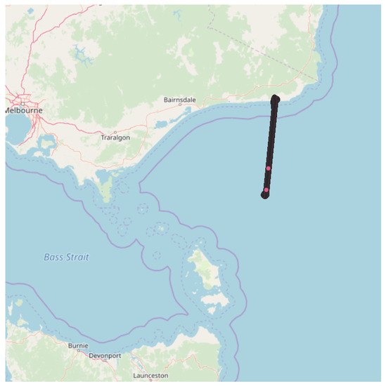 The data under analysis corresponds to a flight over the Bass Strait on 6 June 2018. The plane followed three passes over a straight line going from 37.9°S, 149.23°E to 38.9°S, 149.1°E, as shown in Figure 1. The GNSS-R data used include both L1/E1 and L5/E5a bands and also contain data from both GPS and Galileo constellations at different incidence angles and coming from different azimuths.