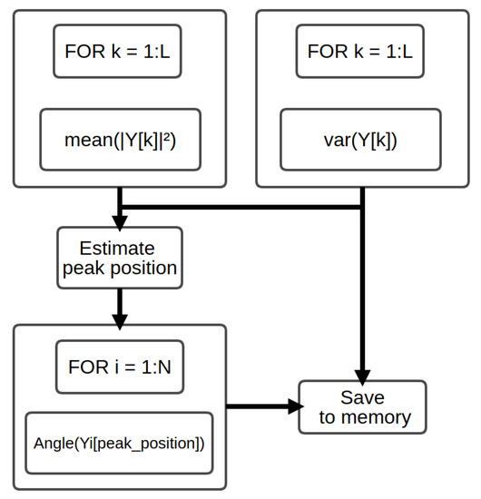 Once each waveform for each of the integration periods has been retrieved, the algorithm in Figure 3 is followed in order to provide the three products: total power waveform; variance part (which is the incoherent part); its difference, which corresponds to the coherent component of the signal; and finally the phase evolution for each integration period.