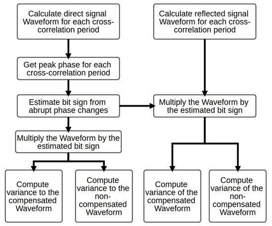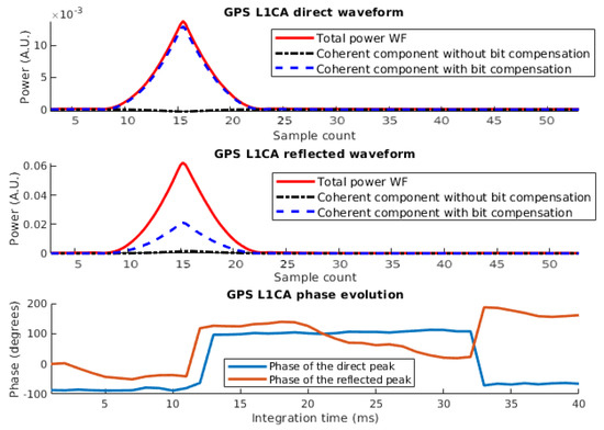 The described algorithm allows for an open-loop tracking of the reflected signal with a variable coherent integration time compensating the bit transitions because of the information of the direct signal. In addition, this algorithm stores both the bit-compensated and the non-compensated coherent integrated waveforms, which are useful to evaluate the coherency characteristics of the signal (i.e., the reflected signal can contain a coherent part, but no bit information can be retrieved).