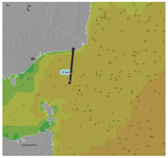 Swell period in the flight path the 6th of June, 2018. Downloaded from Ventusky [27].
