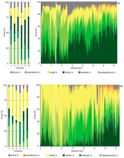 - Acosta, A.; Carranza, M.L.; Izzi, C.F. Combining land cover mapping of coastal dunes with vegetation analysis. Appl. Veg. Sci. 2005, 8, 133–138. [Google Scholar] [CrossRef]
